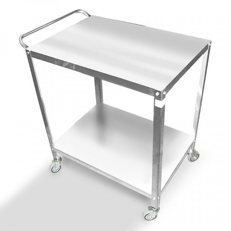 Chariot en acier inoxydable avec poignée, 2 plateaux de 3,5 cm de hauteur. Dimension : 60x40 h 81cm. Poids 8kg. Poids maximum 100 kg.Livré démonté. Production made in italy.