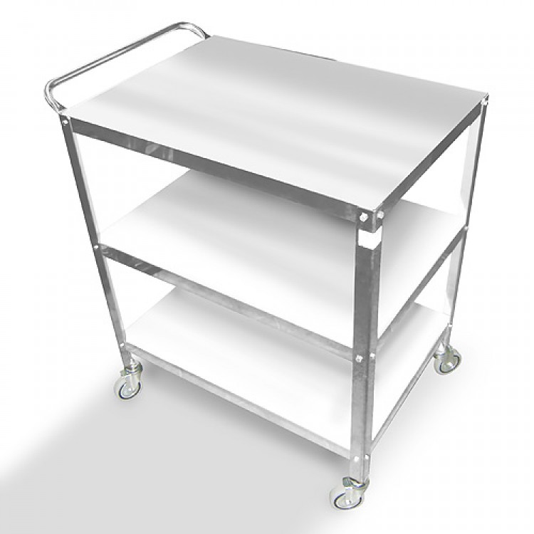 Chariot en acier composé de 3 plateaux . Acier inoxydable avec poignée, épaisseur des plateaux 3.5 cm. Equipé de roues en caoutchouc. Entièrement fabriqués en Italie. Mesure :70x50 Hauteur : 82 cm. Poids 13 kg.