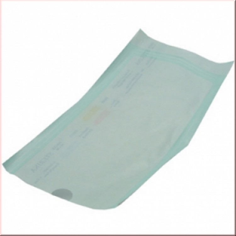 Enveloppes à souder en papier médical et film plastique bleu clair en polyester/polypropylène. Trois soudures latérales à canaux imperméables et uniformes pour une protection microbienne supérieure.