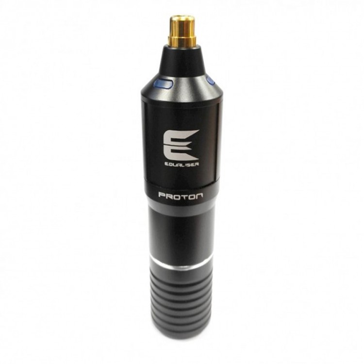 Son nouveau système d'engrenage est silencieux et fiable. Le matériel utilisé pour le corps de la machine est de la plus haute qualité, anodisé aluminium. Tout cela rend cette machine rotative très léger et polyvalent avec le but de faciliter la réalisation du tatouage. La machine de tattoo Proton est compatible avec tous les types de cartouches .