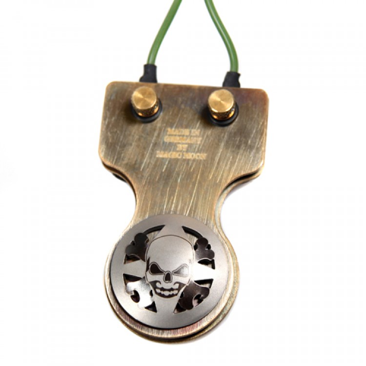 Pédale en acier Magic Moon. Découpe du crâne faite au laser. Livrée avec câble en silicone. Fiche jack.