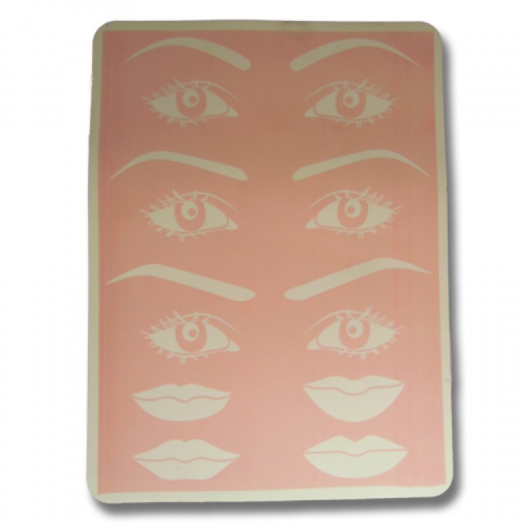 Plaque d'entrainement lèvre, oeil, sourcil en latex pour le maquillage semi permanent. Matériel d'apprentissage en latex. Réalisation de sourcils, eye-liner et bouches (contour et remplissage).
