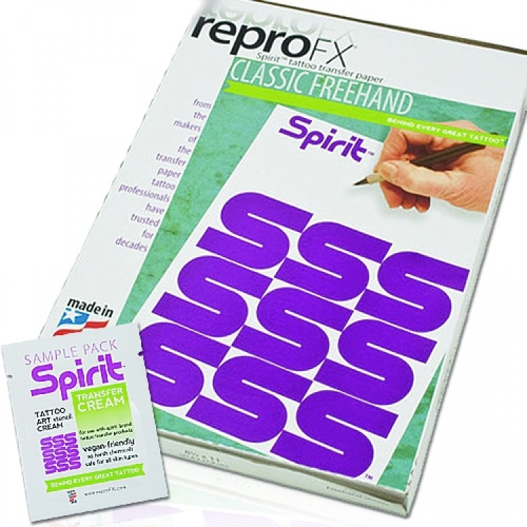 ReproFX carte hectrographique pour dessiner à main libre sans l'utilisation d'un thermofax.Teinte violette pour une meilleure visibilité et matériel de bonne qualité. La feuille est divisée en 4 couches qui se composent : la feuille de protection, la feuille carbone et la feuille de support. C'est le meilleur produit pour le transfert sur la peau, parce que la carte est très résistante à l'eau et le dessin ne s'effacera pas. Taille 8,5 "x11" Disponible en paquets de 25, 50 et 100 feuilles.
