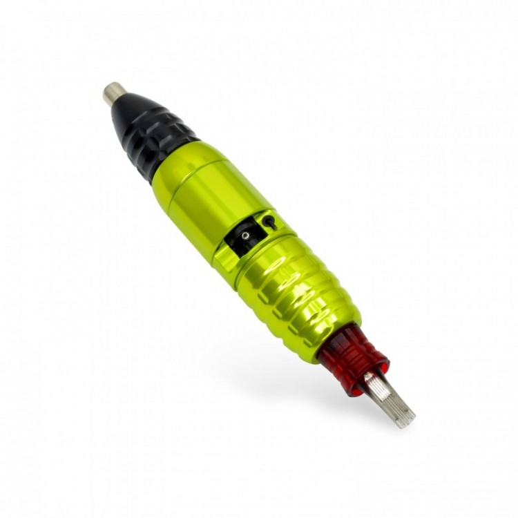 La dernière création Stigma Rotary machine est la Ray. Cette machine rotative à une forme de stylo et à la possibilité de régler la course de 3 mm à 4 mm. La Ray peut être utilisée avec tous les moteurs sauf le Stigma® MotorPlugs brushless MotorPlug 5 Watt. Le moteur conseillé est le MotorPlug 6 Watt Stigma® MotorPlugs. La Ray est une rotative qui s'utilise avec les cartouches d'aiguilles Stigma qui sont est totalement différentes des autres systèmes d'aiguilles à cartouches présentent sur le marché du tattoo. La Ray a une prise en main confortable de 27mm de diamètre et sont également disponibles dana d'autres couleurs.