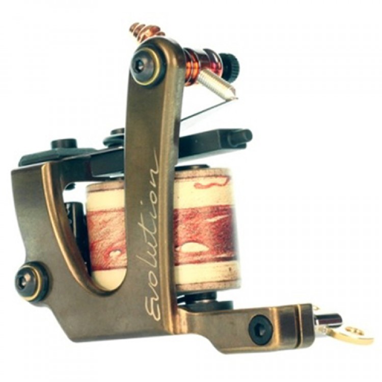 Machine à tatouer pour les dégradés. Machine en laiton, avec un cadre constitué d'une seule pièce de métal puis fini à la main. - Les bobines sont produites à la main, sont assemblées avec un fil de cuivre. Toutes les pièces sont en cuivre et la vis de contact est en argent 825. - Les ressorts sont en acier.